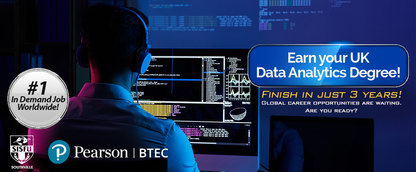 The UK Diploma in Data Analytics curriculum with BTEC Level 4 & 5 accreditation through PEARSON, UK and is attainable in just two years with an additional 1-year Top-Up at a UK University of your choice. This practical, competency-based programme prepares business students for the realities of demands of global industry.